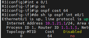 - Router(config-if)# ip ospf cost [ 1 - 65535