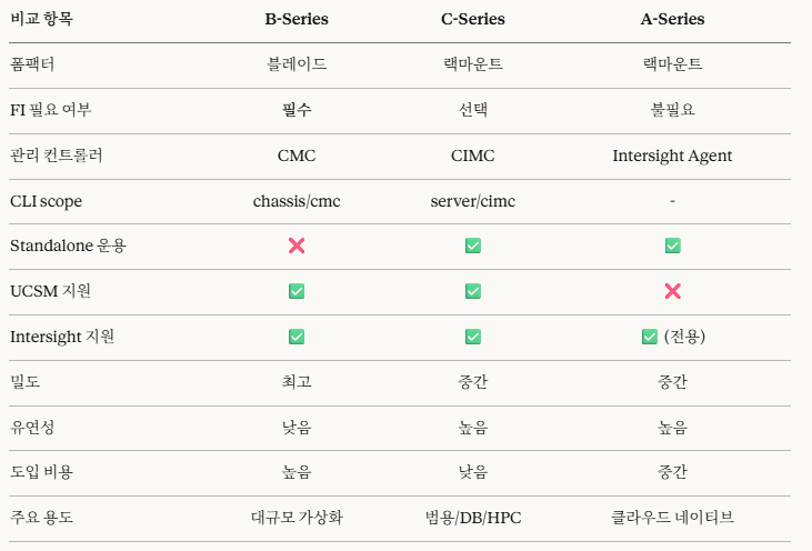 - 샷시 내부 Backplane 연결로 서버 개별 케이블 없음