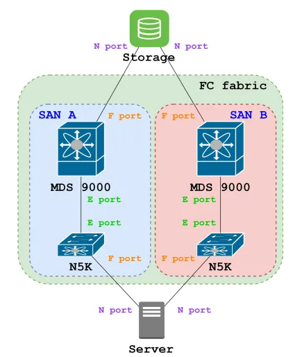 - 주로 SAN에서 사용되며, FC Switch, HBA(Host Bus Adaptor), Storage Array 장비들을 사용