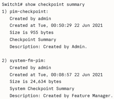 - C. rollback running-config checkpoint system-fm-pim atomic