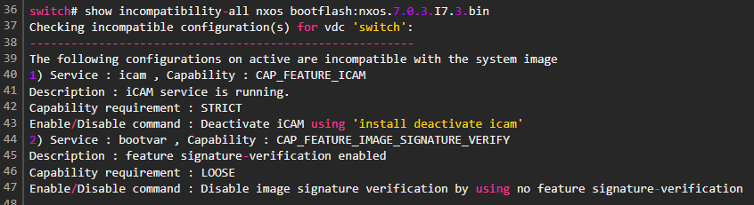 4. show incompatibility-all system bootflash:[image] 실행 시 보여주는 문구는?
