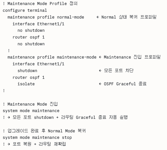 - 업그레이드 전 스위치를 안전하게 "격리"하는 기능