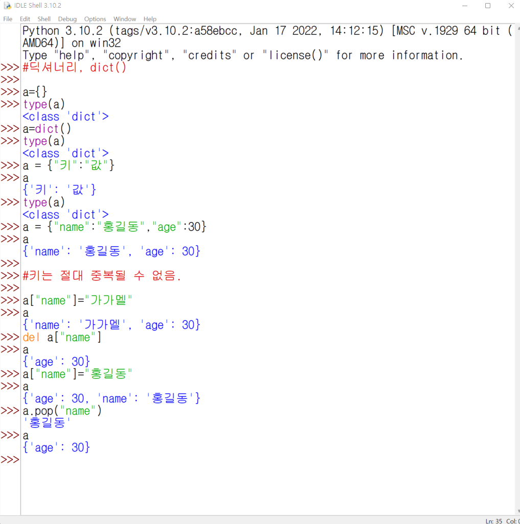 | 파이썬 튜플~딕셔너리~변수 #2 (0) | 2022.05.09 |