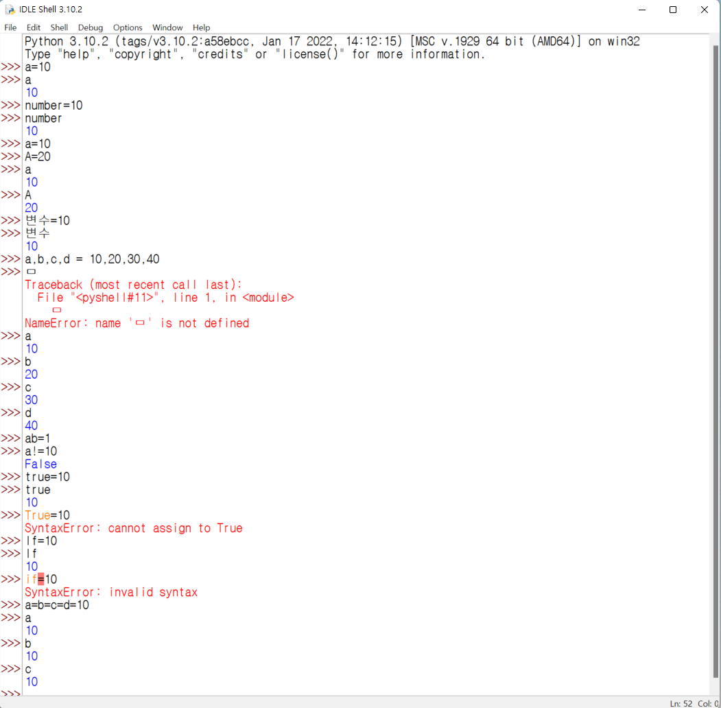 - 변수명은 내장 키워드를 사용할 수 없음.
