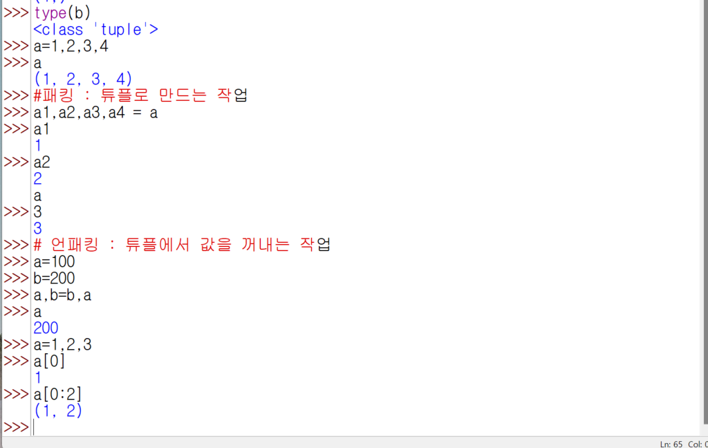 1. a2 = (1,)처럼 단지 1개의 요소만을 가질 때는 요소 뒤에 콤마(,)를 반드시 붙여야 함!