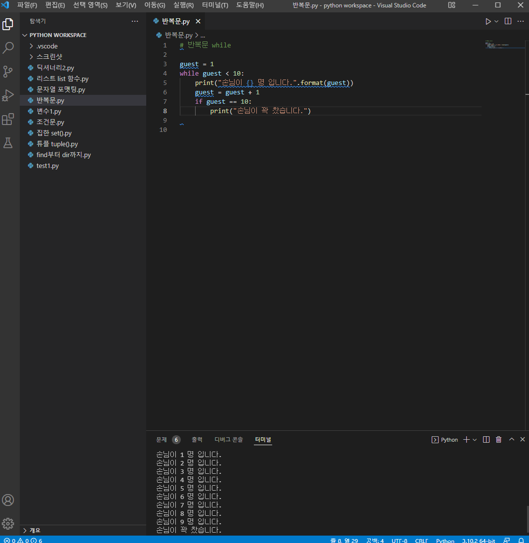 조건식이 참(True)인 경우 실행문이 계속적으로 실행되는 파이썬 문법.
