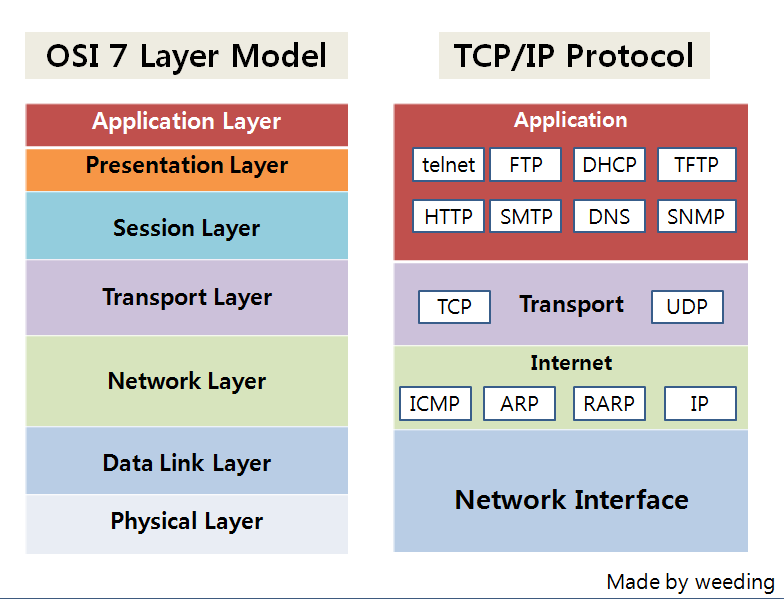 OSI(Open System Interconnection) 7계층은 국제 표준화 기구인