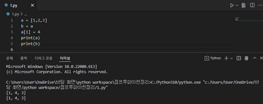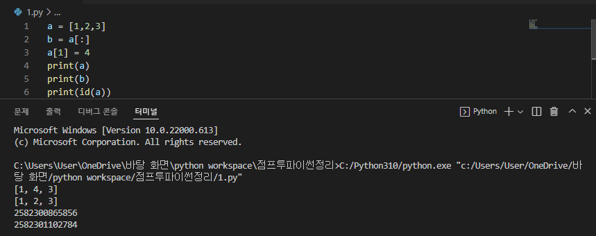 a = [1,2,3]을 그대로 b한테 주고 싶고 b는 변하지 않게 하고 싶다면?