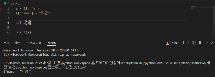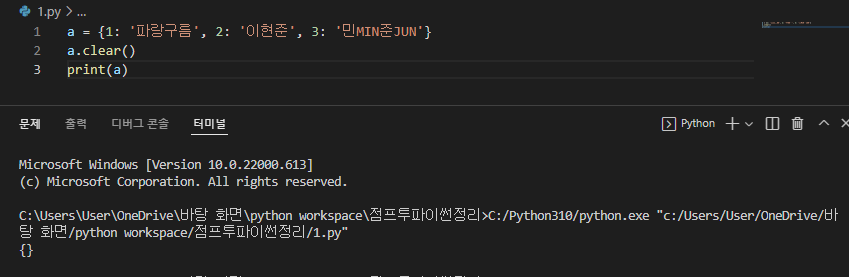 ※ dictionary 주의사항