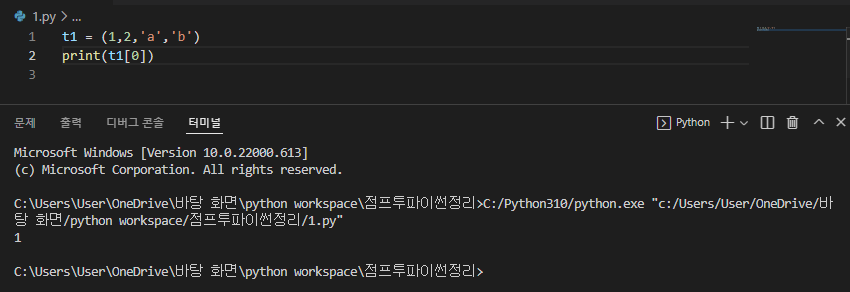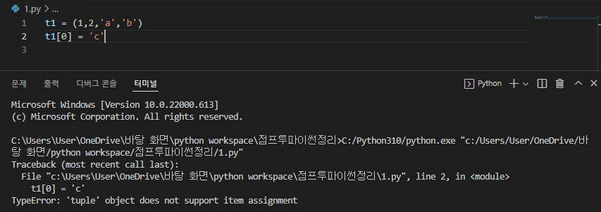 ★튜플은 변경이 불가능! (길이/값 다 고정됨)