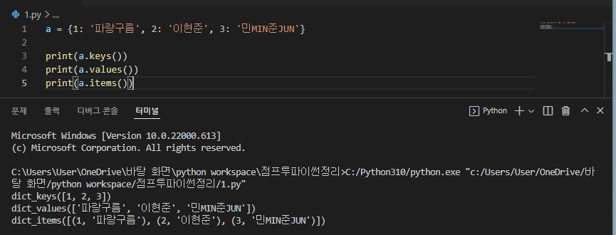 Key, Value 쌍 얻기(items)