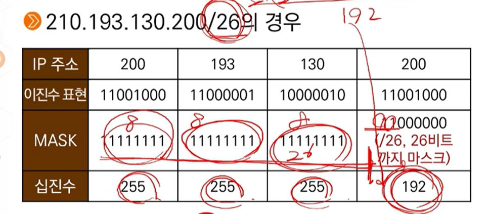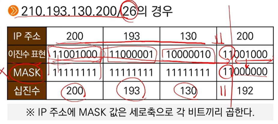 Q. 210.193.130.200/26 의 경우 200.193.130.130/26의 서브넷 마스크 값은?
