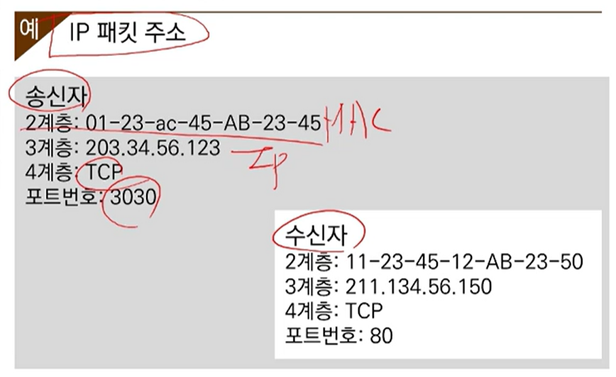 | 우편번호 | MAC 주소(2계층) = 물리적주소 = 눈에 보이는 번호 |
