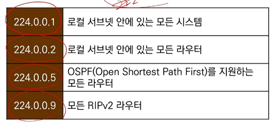 ex) xxxx.xxxx.xxxx.0 - 직접적 브로드캐스트 주소