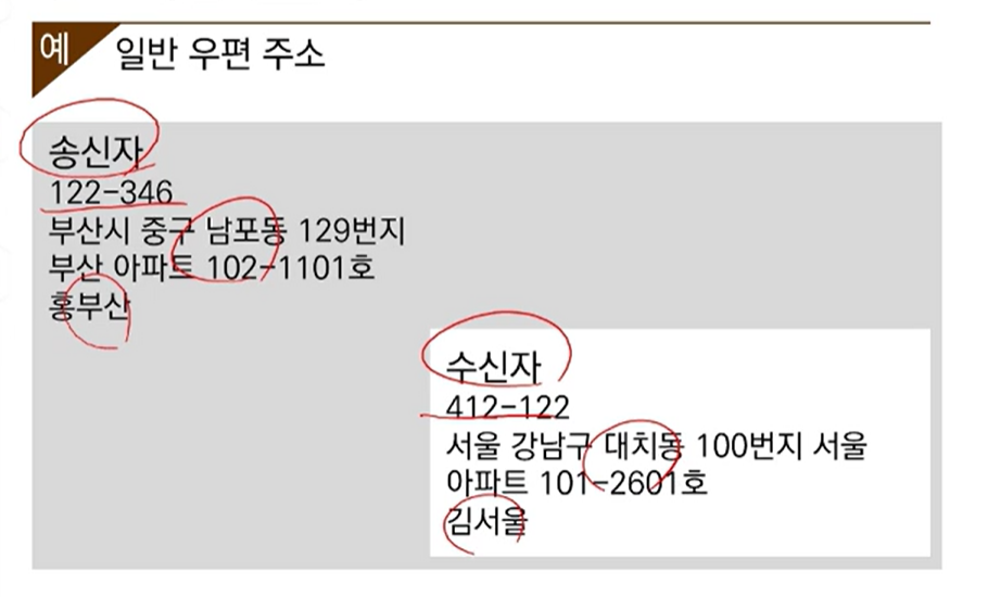 | 일반 우편 주소 | 데이터 패킷 주소 |