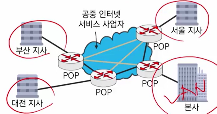 - 글로벌 환경에서 기업이나 기관의 본사와 멀리 떨어져 있는 지사를 통신 서비스 제공사업자(ISP)의 공중 인터넷 네트워크 자원을 활용하여 상호 연결한 가상의 사설 네트워크