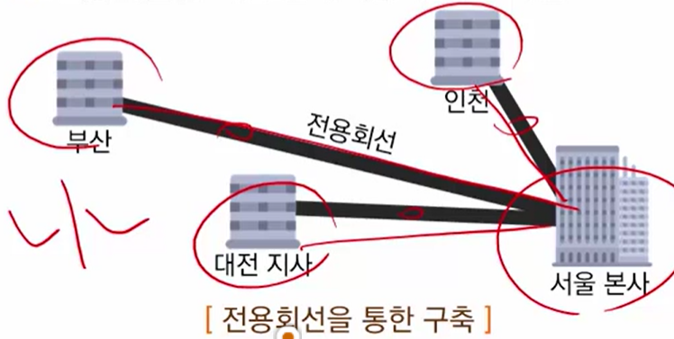 - 기업의 본사와 지사 간을 공중기간 통신사업자의 전용선을 임대하여 구축