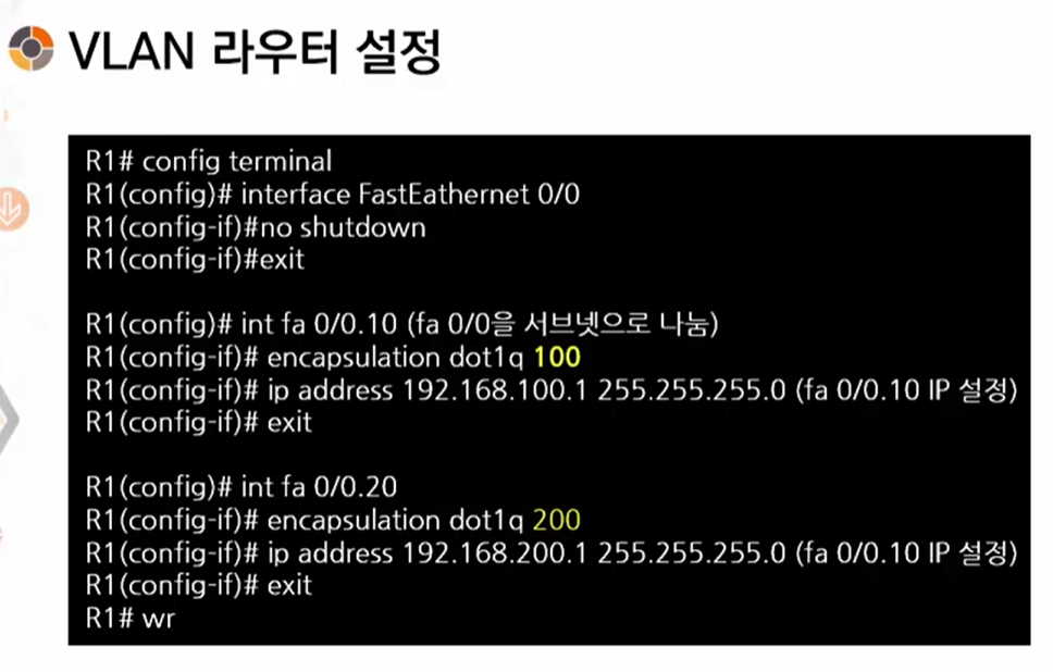 - VLAN 간의 통신을 위해서는 라우터를 사용!