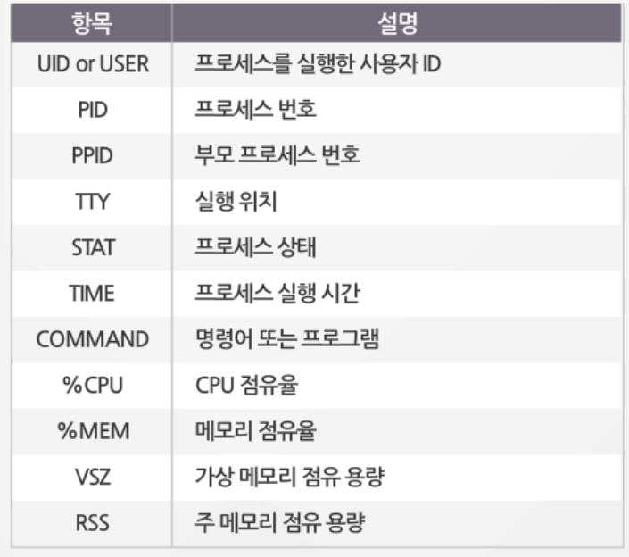 - 프로세스 번호 (PID) : 운영체제에 의해 프로세스에 할당되는 고유 번호