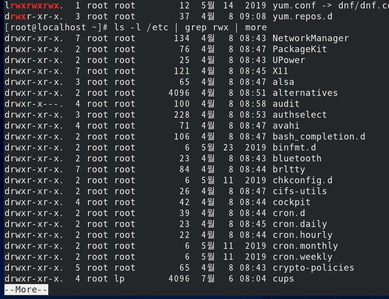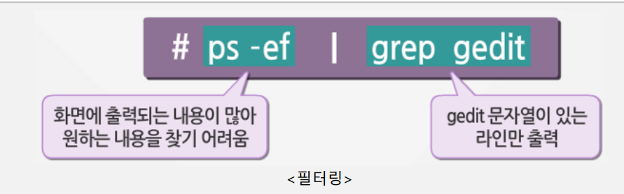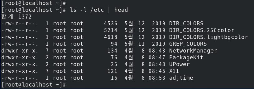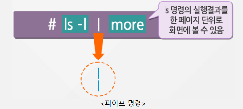 - 파이프 기호의 왼쪽 명령의 실행결과가 오른쪽 명령의 입력으로 연결됨