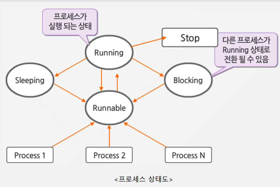 - Background Process : 화면에 보이지 않으면서 실행되는 프로세스