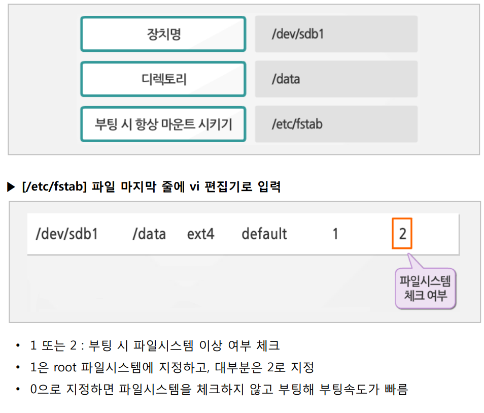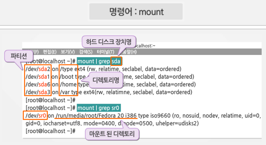 - 장치 또는 파티션과 디렉토리 연결하는 것